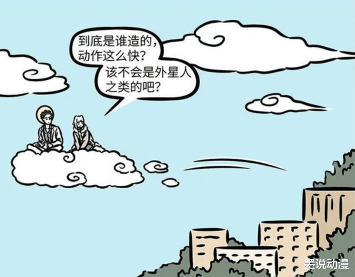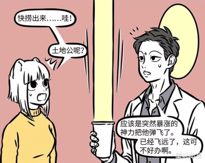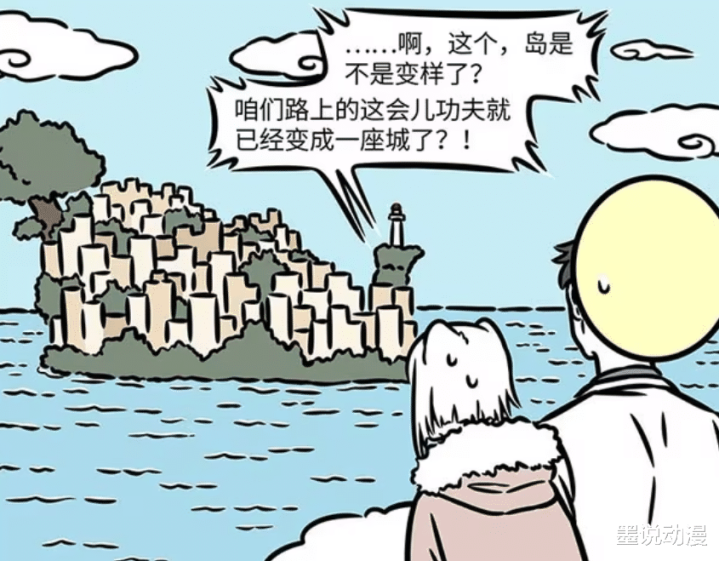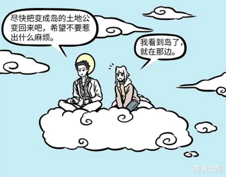 《非人哉》漫画版中,土地公因为之前住的花盆打碎了,所以要找寻新住处。不小心掉进玉净瓶里面,导致神力激增,最终变成一座岛。观音和九月找到土地公,只是没想到他身上有了大变化。徐哼唧在这里建了一座城,这速度简直可以用神速来形容。