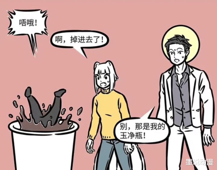 谁能想到这是观音的玉净瓶,还是没有盖上盖子的玉净瓶。原本观音想阻止土地公进去,可是为时已晚。土地公是自己掉进去,看起来就像溺水一般。那么这么多甘露水,会给土地公带来什么变化?